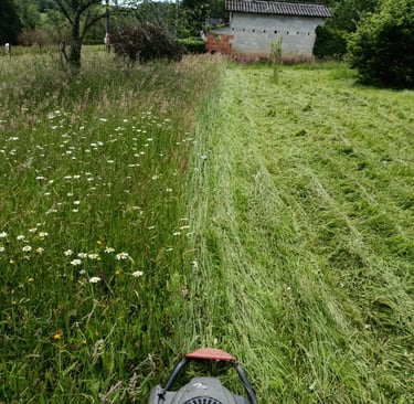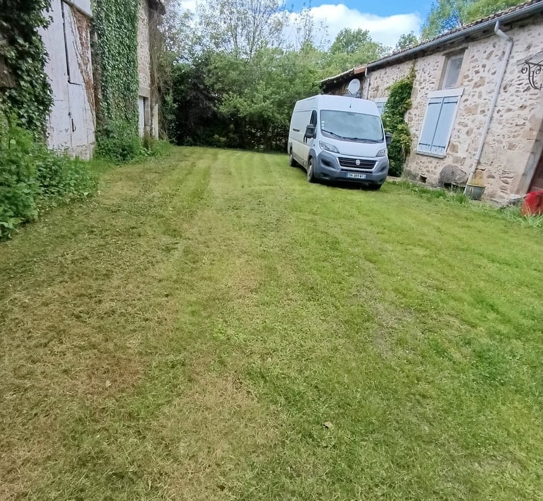 No petrol tools used, only professional quality cordless equipment which are charged by the sun
